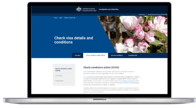 Visa Entitlement Verification Online (VEVO) allows visa holders, employers, education providers and other organisations to check visa details and conditions