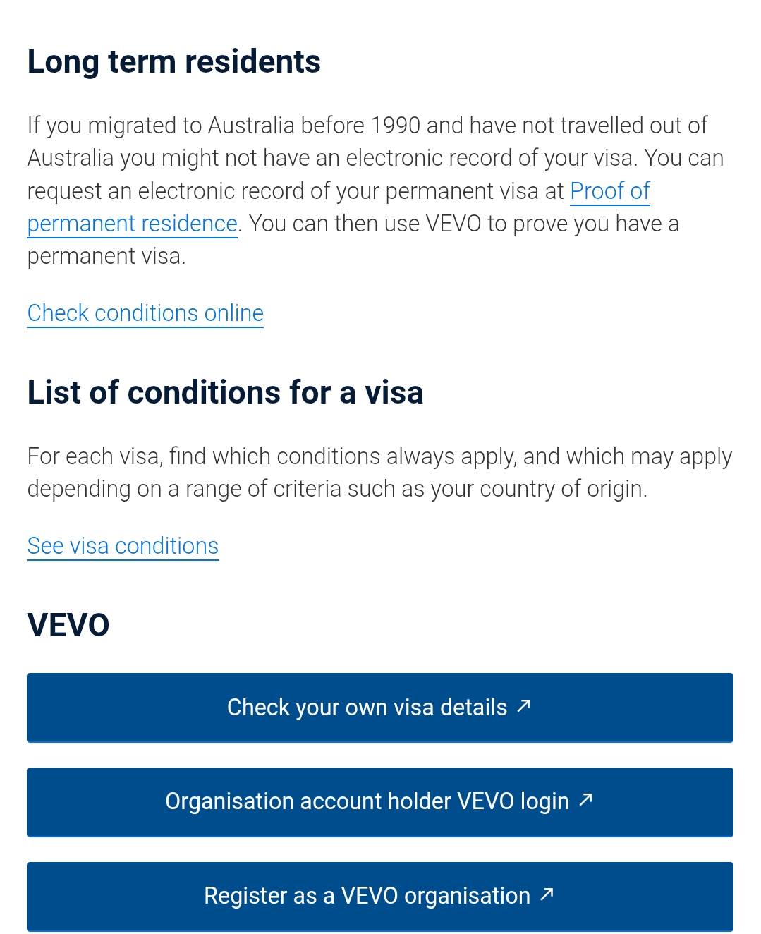 Official information and services about Australian visas, citizenship, and immigration. Check Conditions online (VEVO)